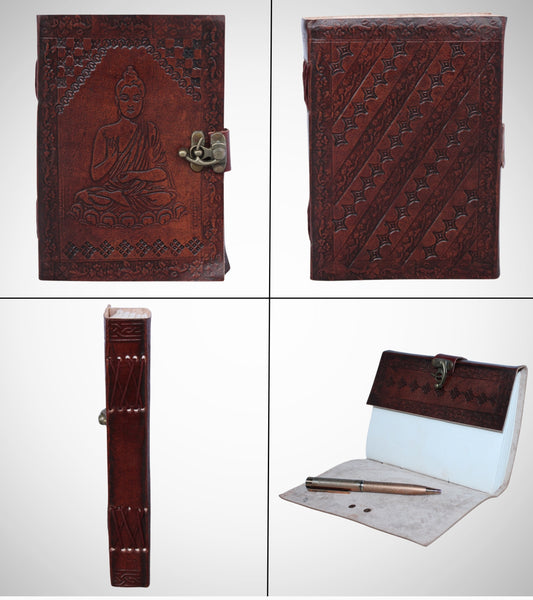 Genuine Leather Bound Journal Brown Buddha Diary Plain Small Sketchers Notebook