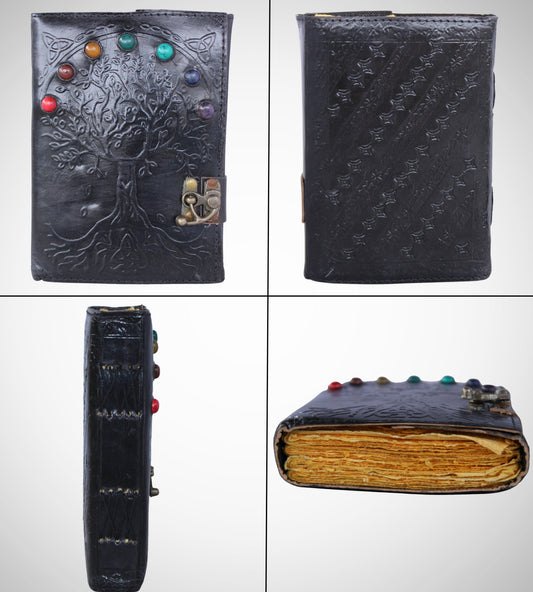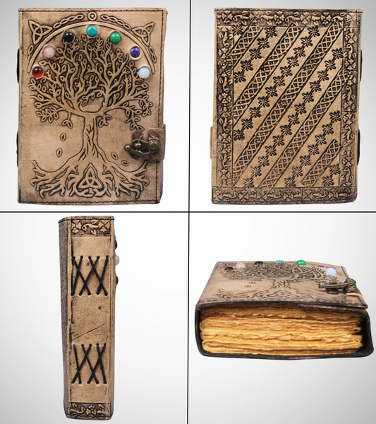 Tree Of Life Stone Studded Genuine Leather Bound Journal Grimoire Office Diary
