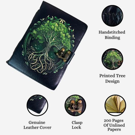 Madosh, Handmade Genuine Leather Journal with Tree of Life Design – 200 Unlined Pages | Vintage Lock Diary | 7x5” Travel Notebook for Writing, Sketching, Gifting