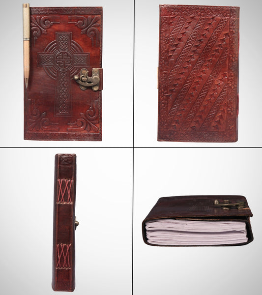 Genuine Leather Bound Journal Grimoire Cross Embossed Notepad Brown Notebook
