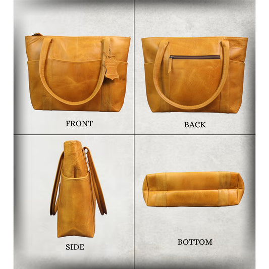Madosh Women's Genuine Leather Tote Shoulder Bag – Handcrafted Yellow Crossbody Everyday Purse with Detachable Strap & Front Pockets