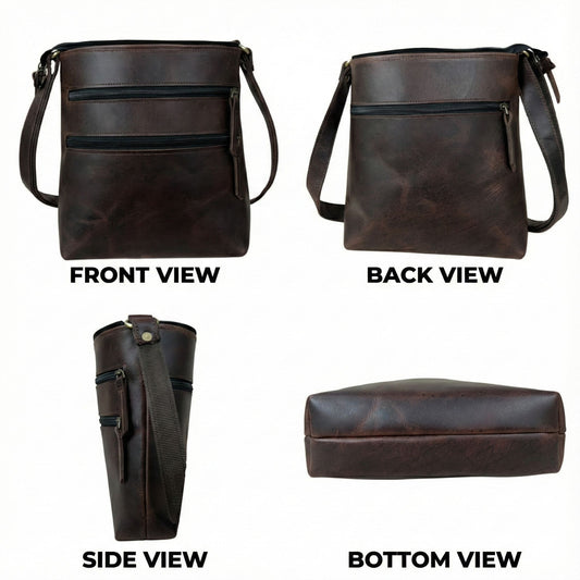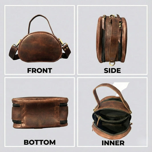 Madosh Genuine Leather Crossbody Sling Bag |Brown Leather Bag | Unique Round layout |Spacious Compartments| Women everyday use.