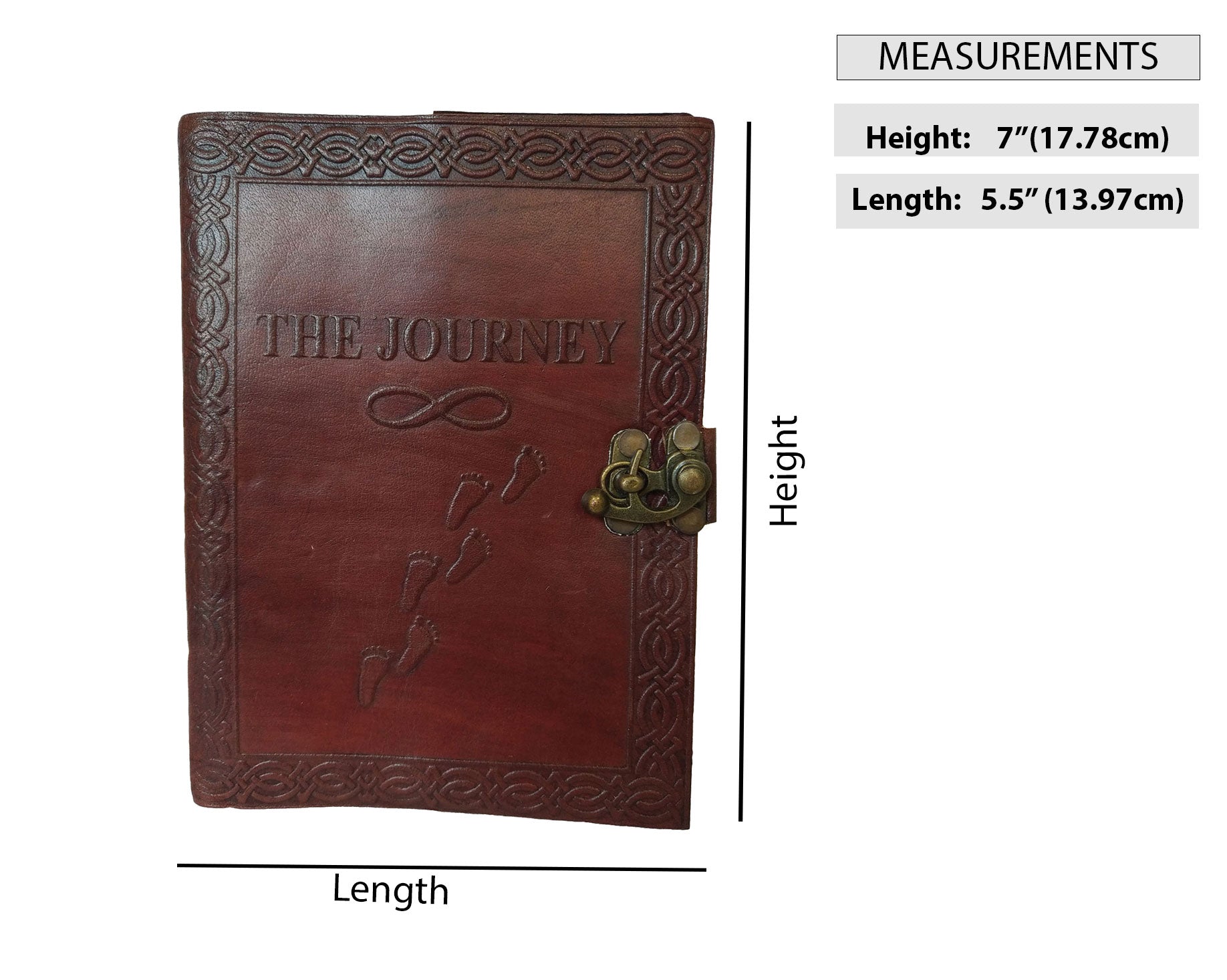 EMBRACE YOUR JOURNEY with this Genuine leather diary embossed with words “THE JOURNEY” is perfect to record your wonderful memories. This diary comes in brown cover and unlined paper with closure of clasp lock. It is also best as your daily routine planner or as your secret keeper!